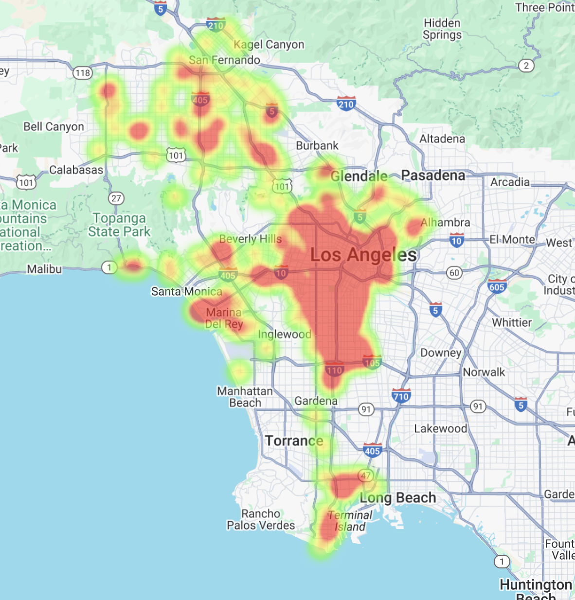 A large number of these collisions happened because drivers didn’t yield, even when pedestrians had the right-of-way. Areas with heavy foot traffic, such as intersections along Figueroa, Florence, and La Cienega, see constant activity from students, commuters, and families walking to local shops and transit stops.